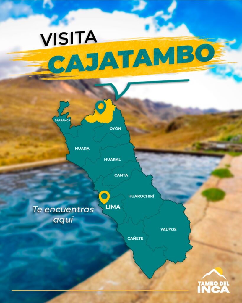 - Información adicional: La provincia de Cajatambo es conocida por ser el punto de inicio hacia las piscinas termales de Guñog, además también es conocido por ser la entrada a la Cordillera Huayhuash, un destino popular para el trekking y el turismo de aventura.